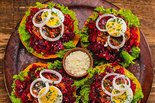 La segunda parada será en la iglesia La Merced. Aquí, probaremos las deliciosas enchiladas guatemaltecas, diferentes de las mexicanas, son tortillas fritas cubiertas con una mezcla de remolacha, carne molida y una variedad de verduras, adornadas con huevo duro y perejil. Acompañaremos este manjar con una bebida refrescante, ideal para continuar explorando.